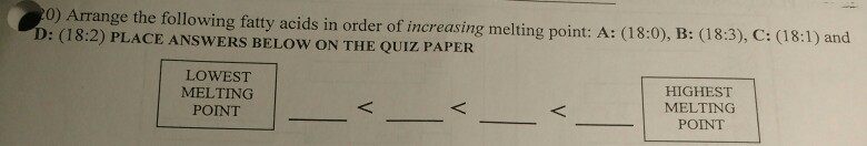 Arrange the Fatty Acids in Order of Increasing Melting Point.