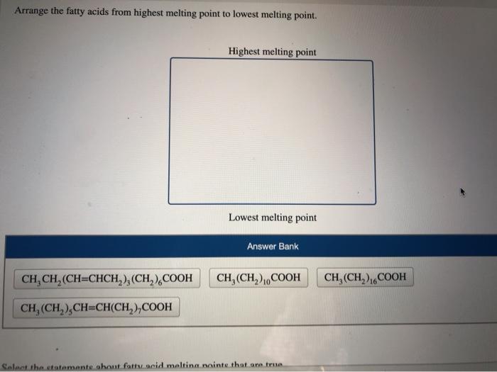 Arrange The Fatty Acids From Highest Melting Point To Lowest Melting Point Brainly Com