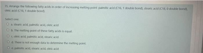 Solved 35 Arrange The Following Fatty Acids In Order Of Chegg Com